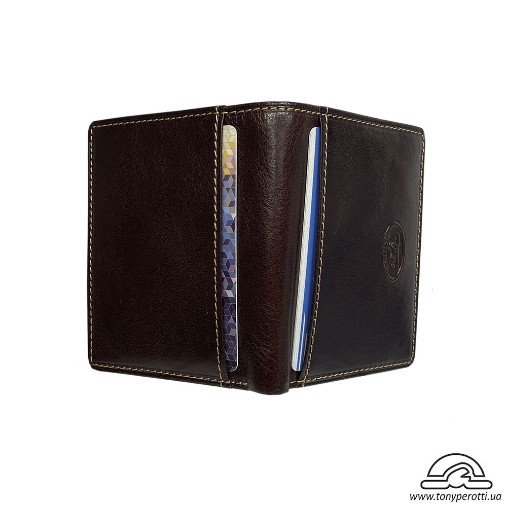 Кредитница кожаная с отделением для купюр Italico 1034N moro коричневого цвета от итальянского бренда Tony Perotti.