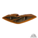 Кошелек имеет 2 отделения для купюр, 3 кармашка для карточек, монетницу на кнопке. Основное отделение фиксируется скрытой кнопкой.