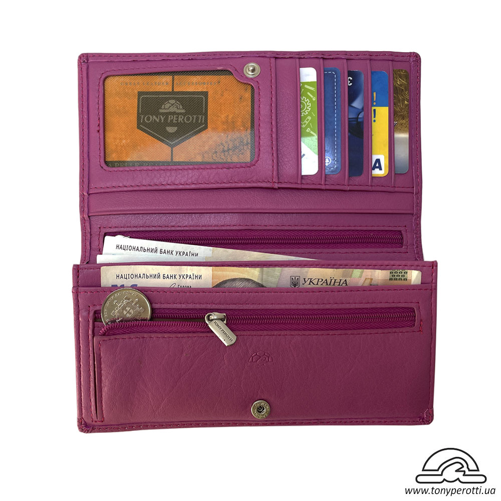 Портмоне кожаное Contatto 2770+RFID dalia розового цвета Tony Perotti, из натуральной кожи телёнка, высшего сорта, лицевой слой.