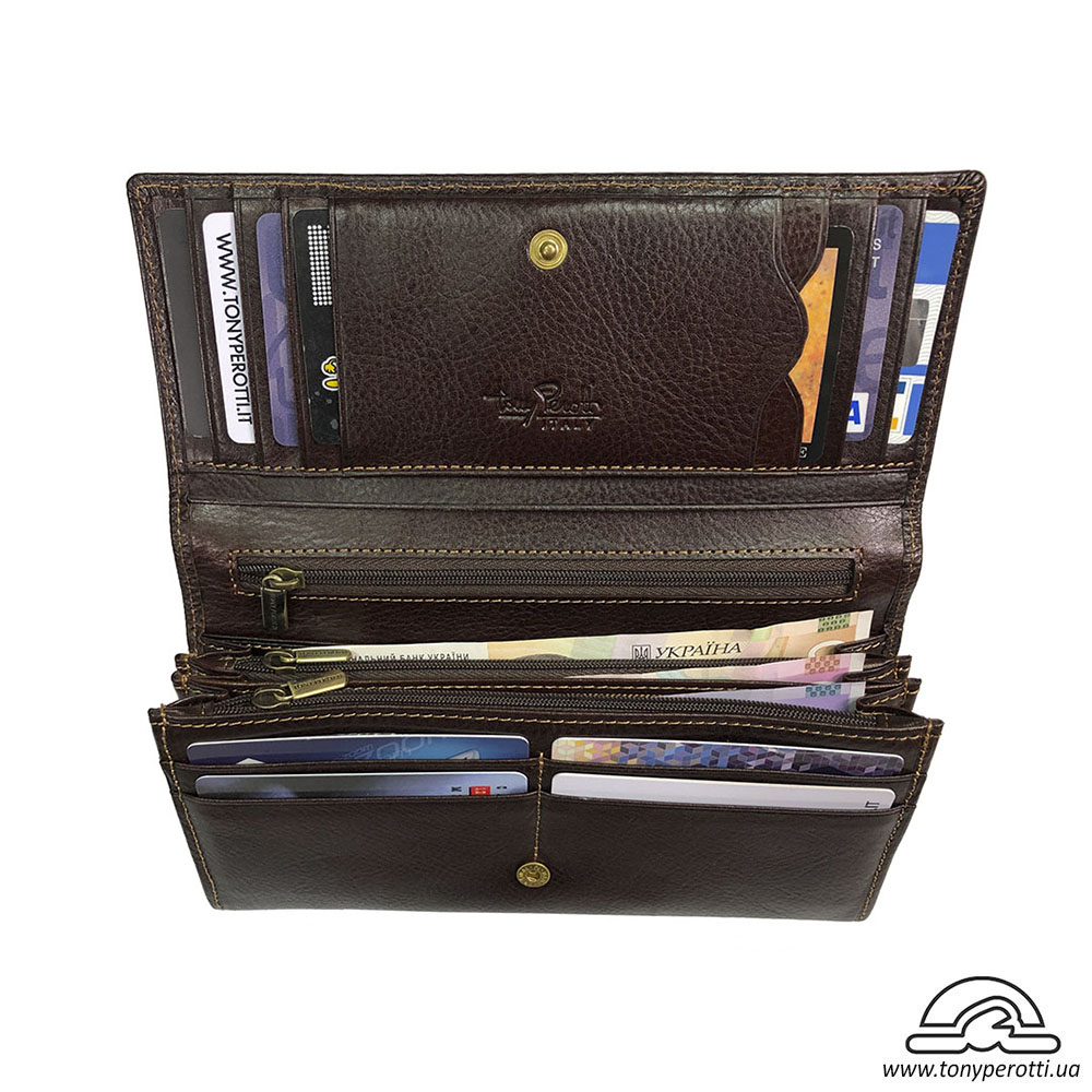 Вместительное женское классическое кожаное портмоне Italico 1911 moro коричневого цвета Tony Perotti.