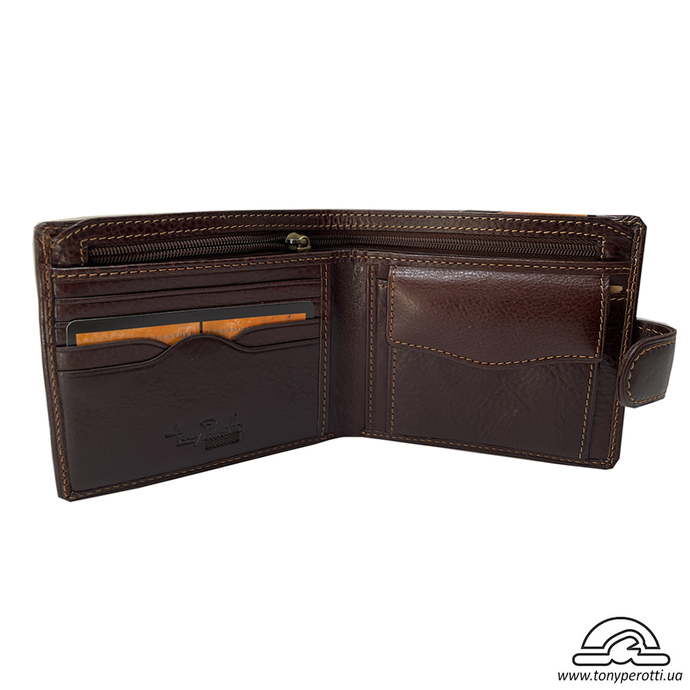 Портмоне кожаное на кнопке Italico 2569A moro коричневого цвета Tony Perotti.