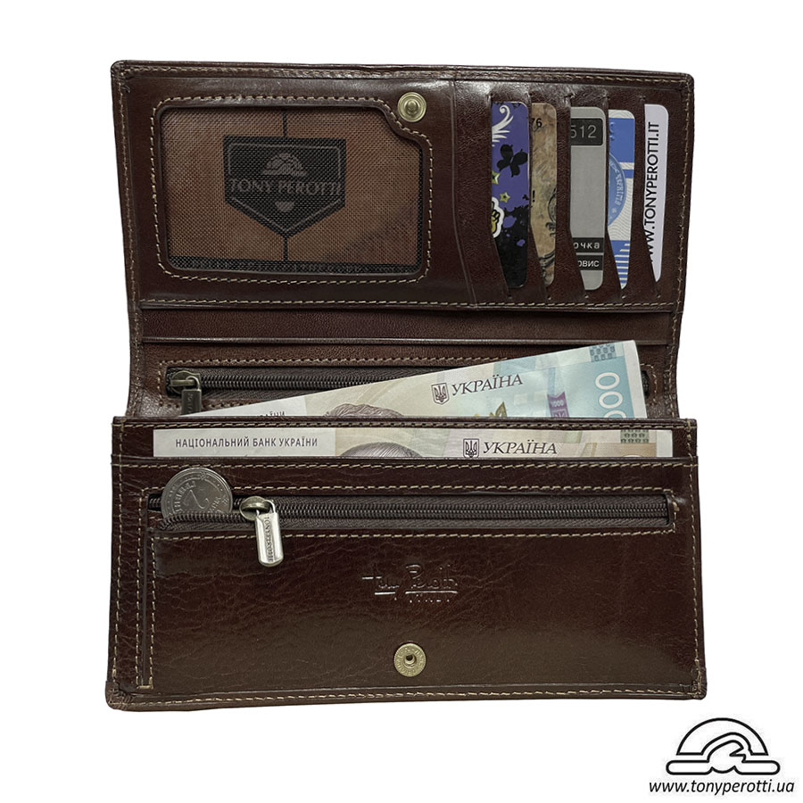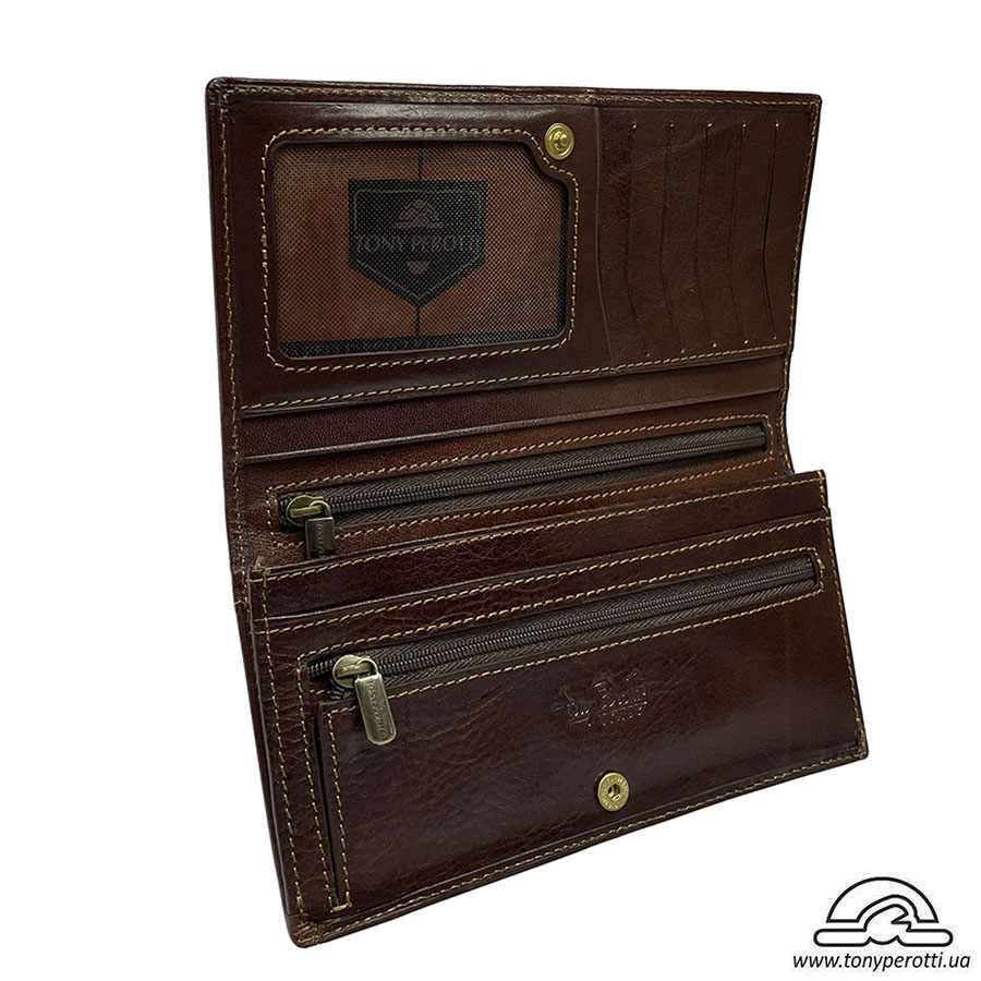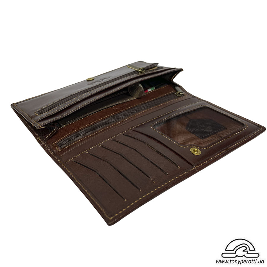 Классическое кожаное портмоне на кнопке Italico 2770+RFID moro коричневого цвета от итальянского бренда Tony Perotti.