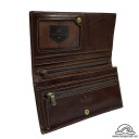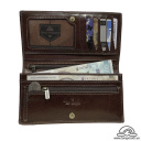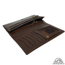 Имеет одно широкое и одно узкое отделение для купюр, карман на молнии можно использовать для хранения монет. Аксессуар закрывается клапаном на кнопке. Внутри фирменная кледчатая подкладка, бирка с голограммой. На тыльной стороне клапана расположены 5 слотов для пластиковых карт и 1 окошко с прозрачной сеточкой для документов типа ID карты, водительского удостоверения, тех. паспорт на автомобиль либо пропуск. В основном отделении для денег есть 2 дополнительных кармашка для важных кредитных карт. Над ним дополнительное вместительное отделение на молнии. Портмоне имеет под подкладкой специальную RFID-защиту для Ваших кредитных карт. Она обеспечивает 100% защиту вашим средствам на банковских картах от несанкционированного их списания посторонними людьми.
