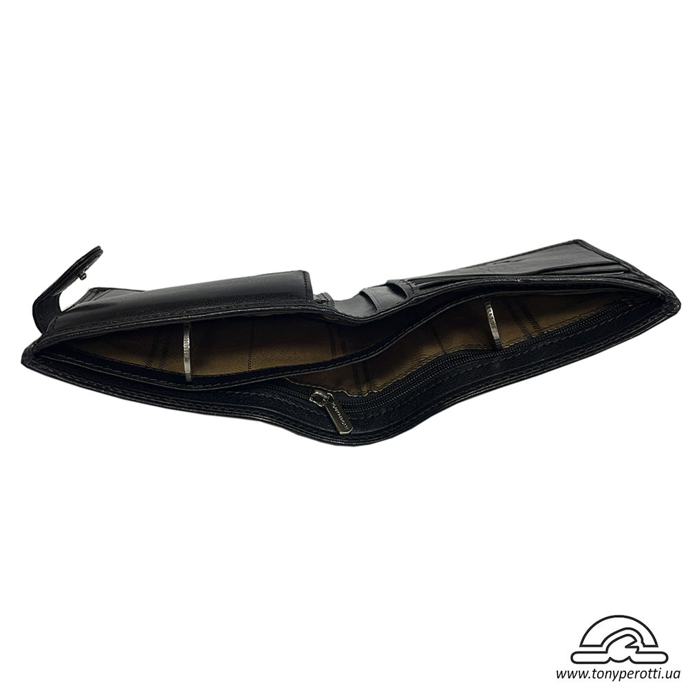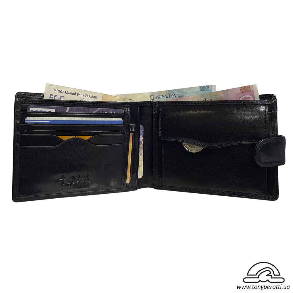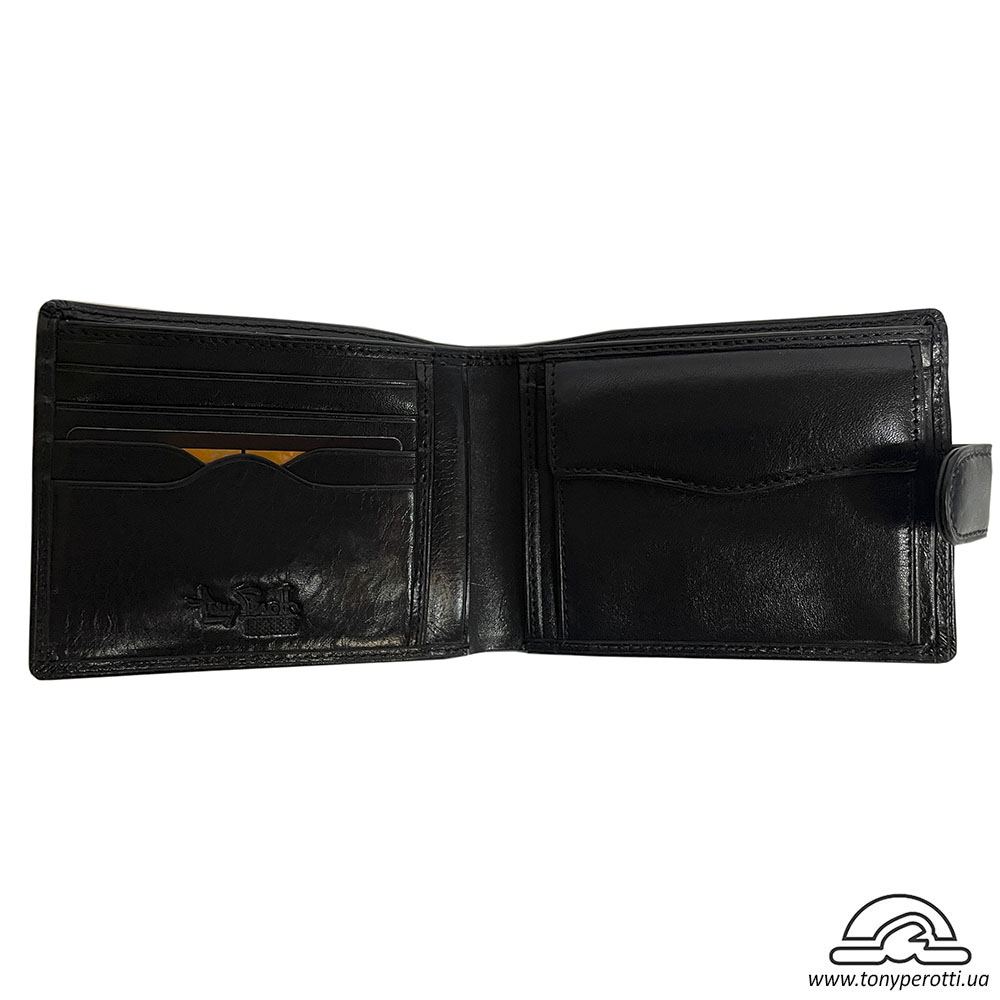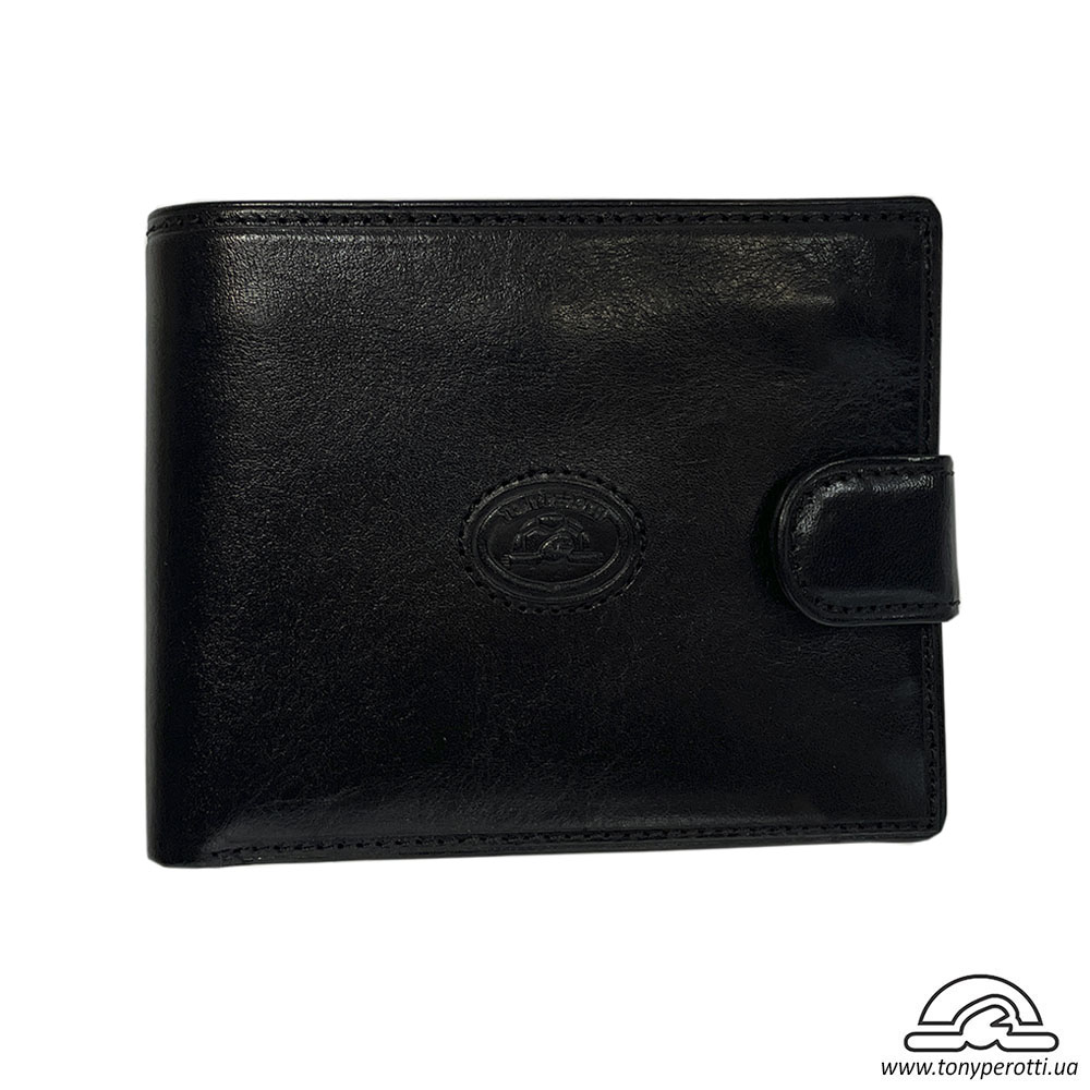 Кожаное черное мужское портмоне на кнопке Italico 534A-Z nero от итальянского бренда Tony Perotti. Из лицевого слоя натуральной бычьей кожи высшего качества.