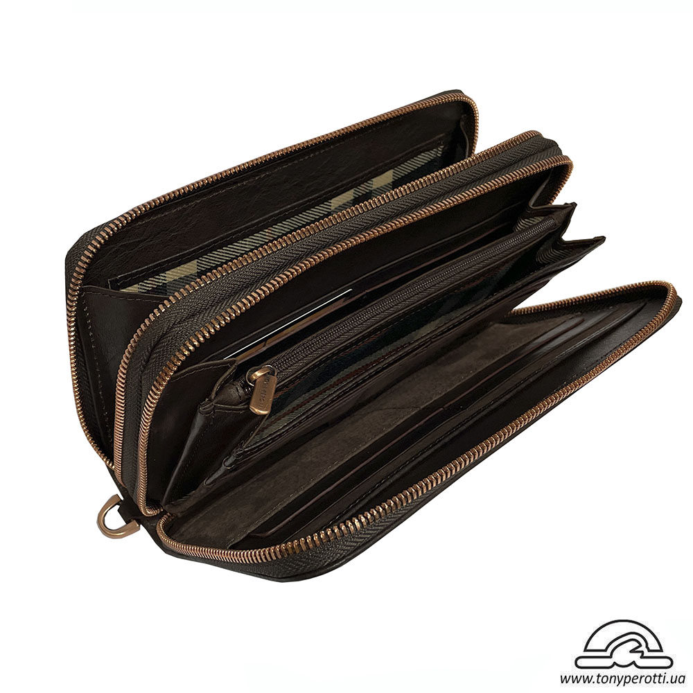 Мужской клатч на 2 отделения на молнии Vintage 3668+RFID moro коричневого цвета Tony Perotti