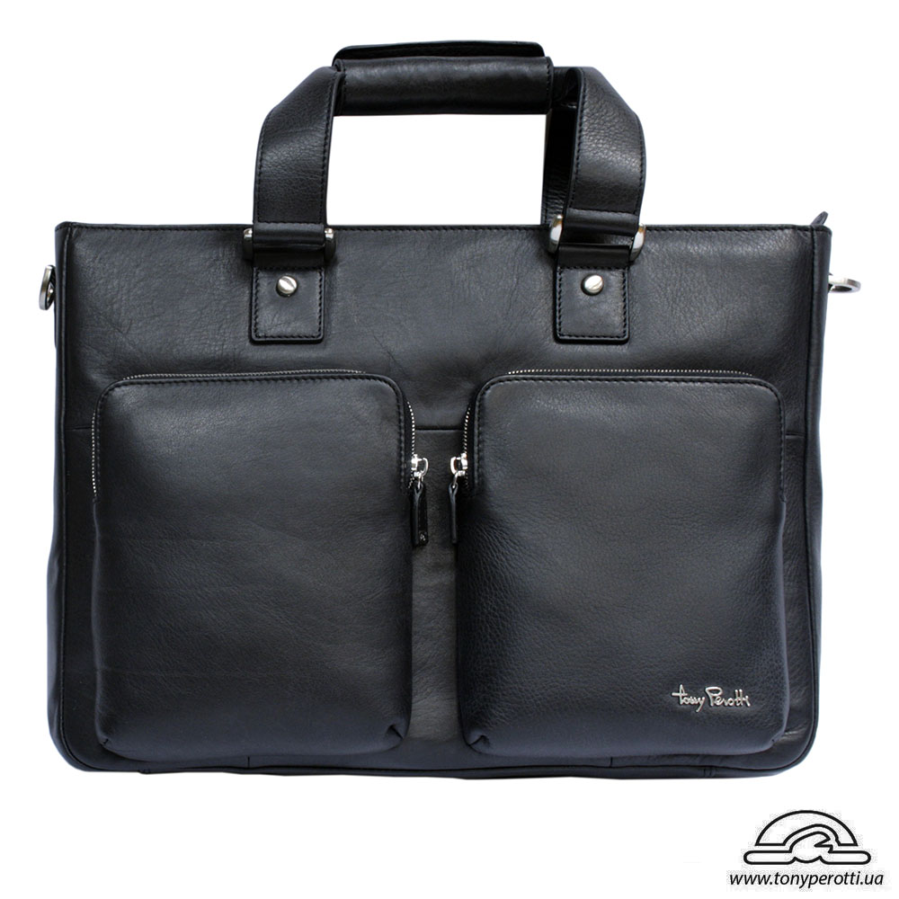 Сумка кожаная Contatto 9699 nero черного цвета Tony Perotti