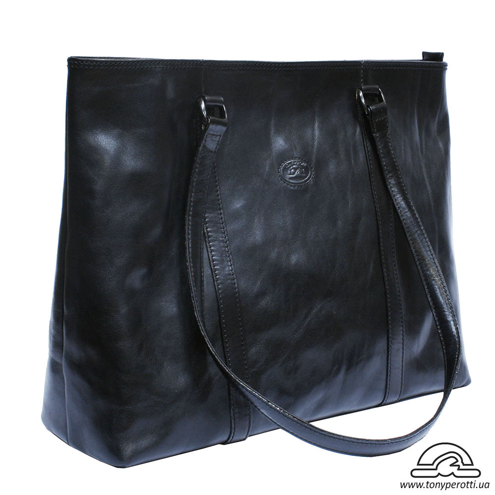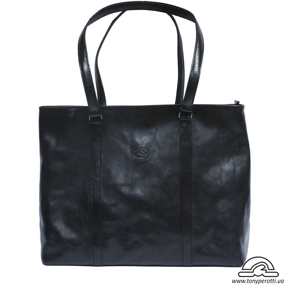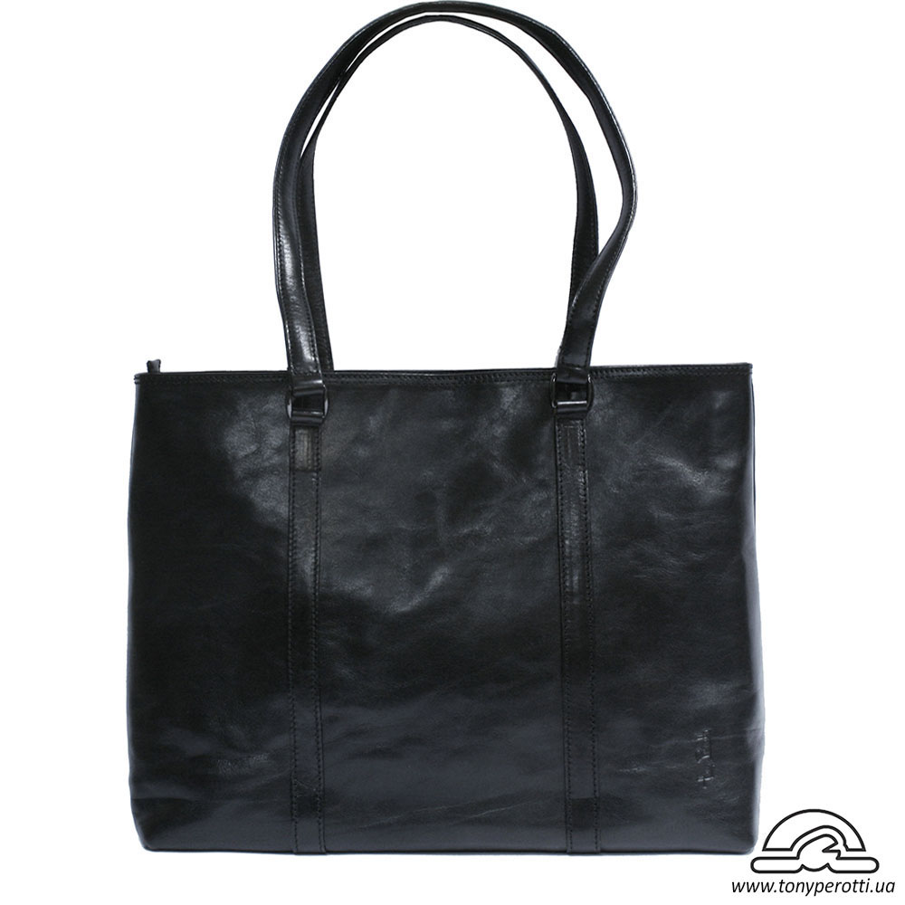 Сумка кожаная женская деловая с длинными ручками Italico 8225 nero черного цвета Tony Perotti.