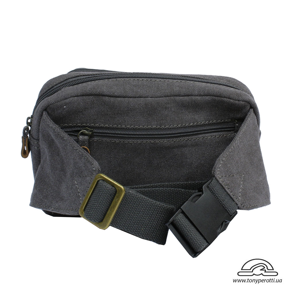 Удобная черная текстильная сумка через плечо/поясная Country 1012 nero Tony Perotti, выполнена из плотной ткани с кожаными вставками.