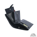 Функціональна і дуже зручна модель з 2 відділеннями для купюр, плюс потаємне відділення на блискавці, 8 слотів для пластикових карт, 1 з віконцем-сіточкою для ID карти, водійських прав або інших документів, 3 додаткових прихованих кишені, класична монетниця на кнопці. Усередині брендована підкладка, бирка з голограмою справжності. Портмоне надійно закривається кнопкою на хлястику, з зовнішньої сторони шильдик з логотипом бренду - черепашкою.